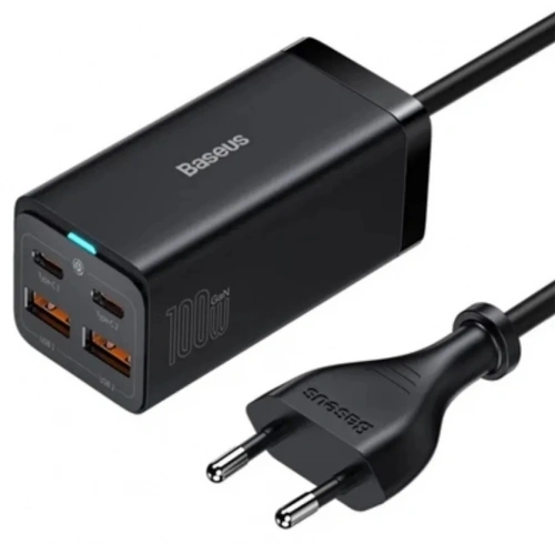 Сетевое зарядное устройство Baseus GaN3 Pro Desktop Fast Charger 2C+2USB 100W EU + Cable Type-C to Type-C 100W 1м, Чёрный (CCGP000101)