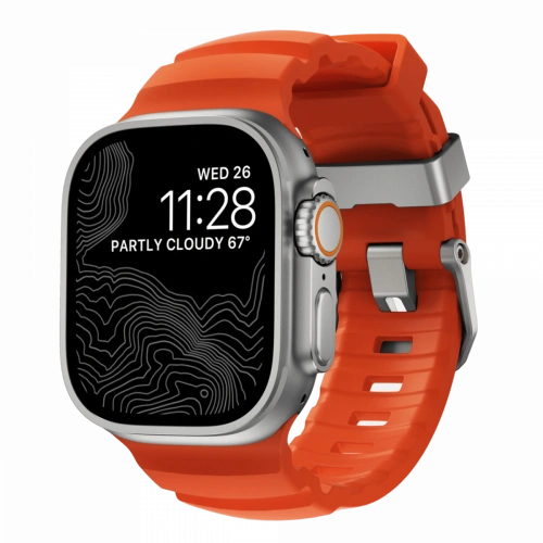 Ремешок Nomad Rugged Band для Apple Watch 42/44/45/49мм, Silver/Ultra Orange (NM01287285)
