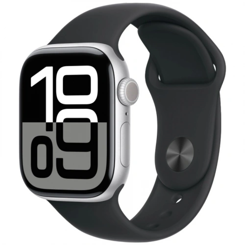 Apple Watch Series 10, 42 мм, серебристый алюминий, спортивный ремешок цвета "Black", M/L (MWWW3)