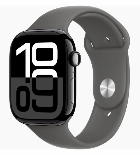Apple Watch Series 10, 42 мм, алюминий цвета «чёрный глянец», спортивный ремешок цвета "Stone Gray", S/M (MWWX3)