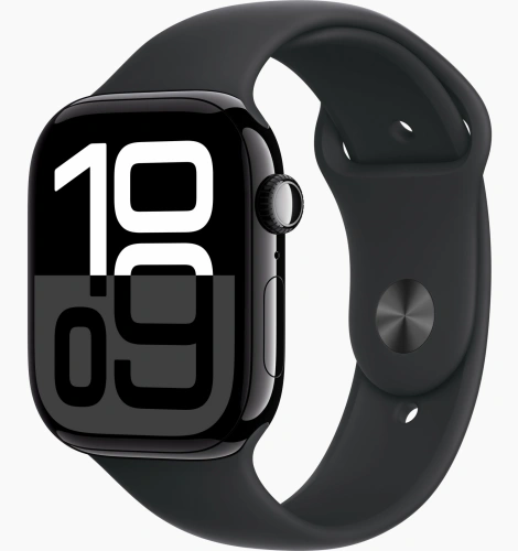 Apple Watch Series 10, 42 мм, алюминий цвета «черный глянец», спортивный ремешок цвета "Black", M/L (MWWF3)