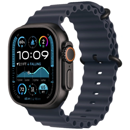 Apple Watch Ultra 2 (2024) GPS+Cellular 49mm, Black Titanium ремешок "Navy Ocean Band" один размер 130-200 mm (MYTC3)