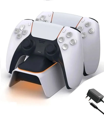 Зарядная станция для двух контроллеров DOBE DualSense PS5 (TP5-0521B), Белый + Адаптер