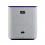 Корпус колонки, выполненный из ткани, не только стильно выглядит, но и обеспечивает приятные тактильные ощущения, защищает динамики и смягчает звук. Встроенный экран светится на текстильной поверхности.